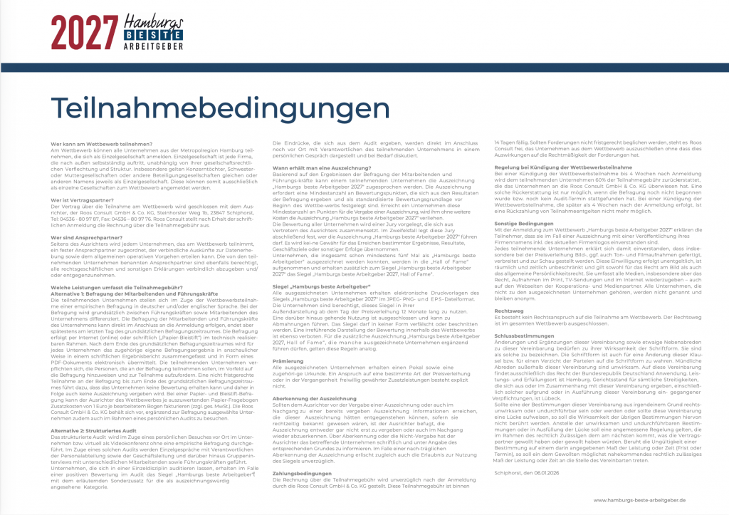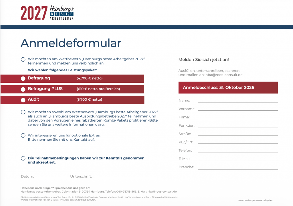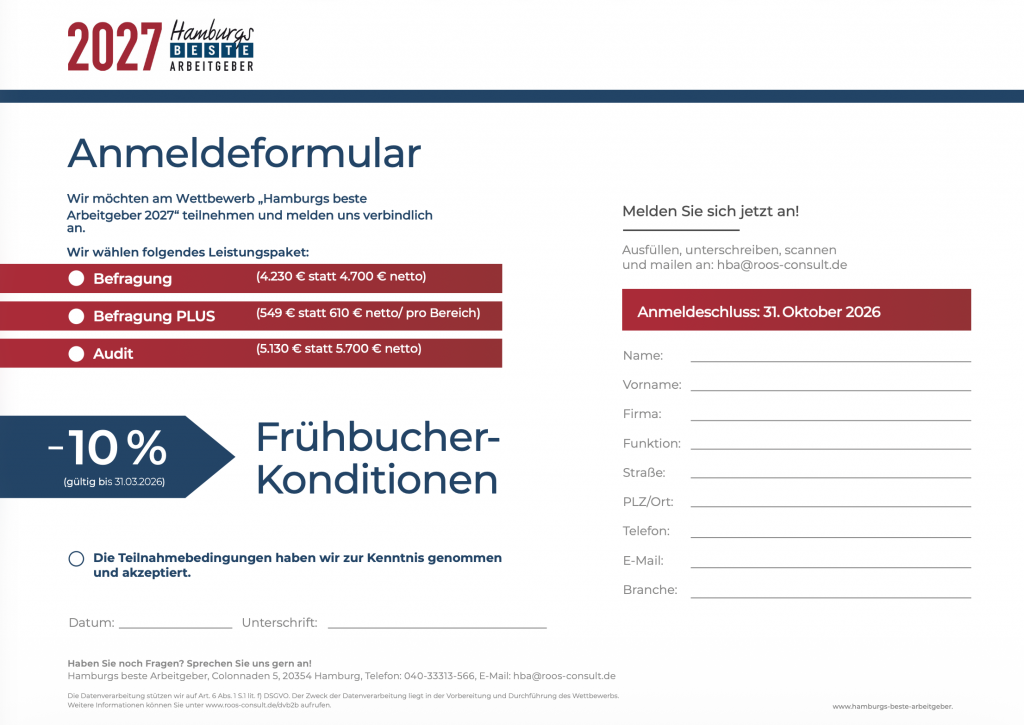 Am Wettbewerb „Hamburgs beste Arbeitgeber“ können Unternehmen jeder Größe und Branche aus der Metropolregion Hamburg teilnehmen. Es gibt dabei keinerlei Einschränkungen.